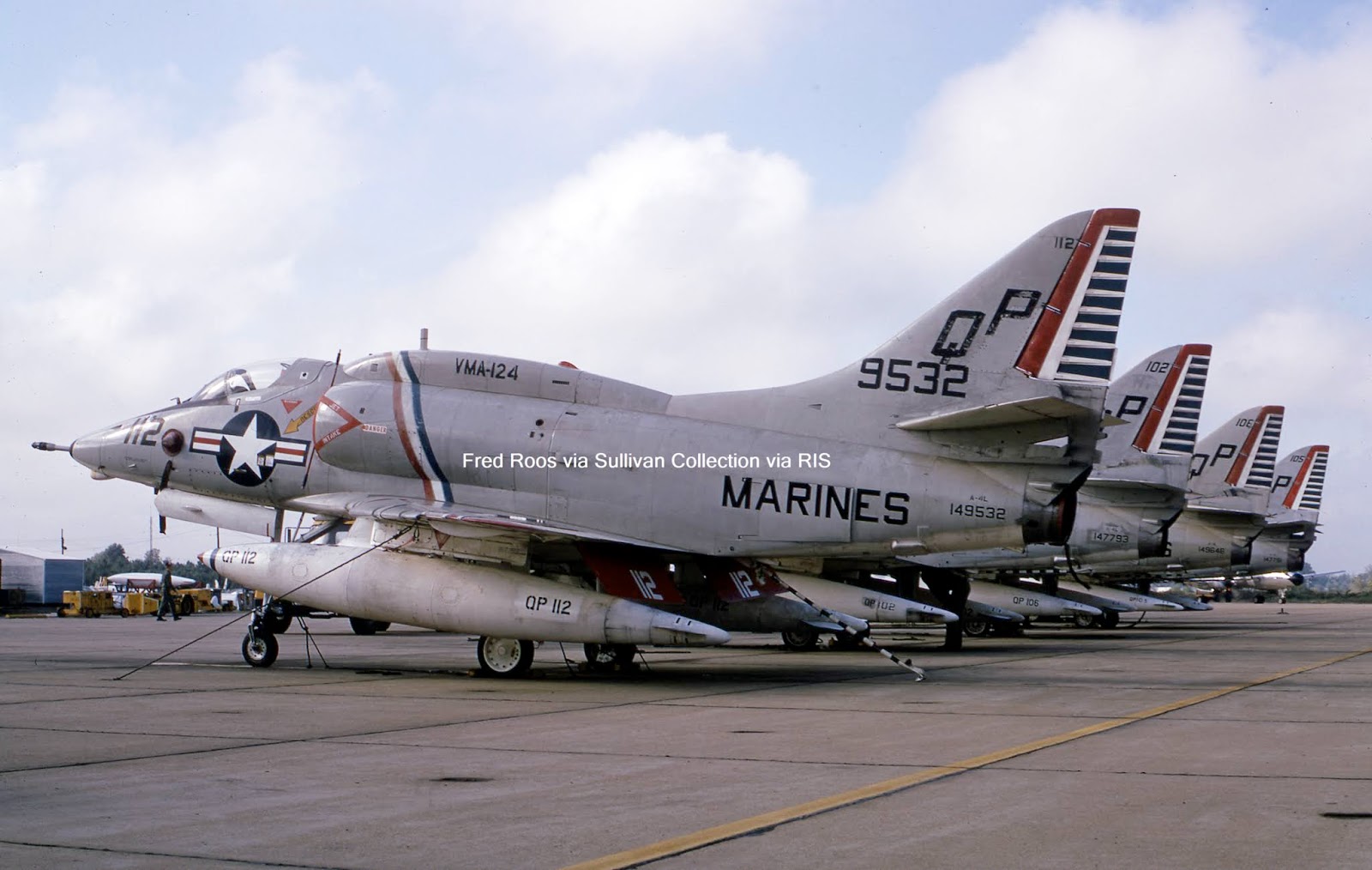 64-0827 was wearing a pod that day as well, and she's got TERs on her inboard stations too. Modelers take note of that gas bag; it's dented and the paint demarcation line on its nose cap doesn't match that of the main tank body. The devil's in the details, as this F-4C-24-MC attests! Friddell