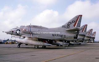 OK, is this pretty or what? Rick Morgan took it off the coast of Southern California back in February of 1987. She's 161929 and we presume she was from VFA-25, although the slide isn't so noted. We can't tell you much more about her except that she ended up at Davis Monthan in 1996, but she was The Bombdiggdy when Rick shot this photo! Rick Morgan