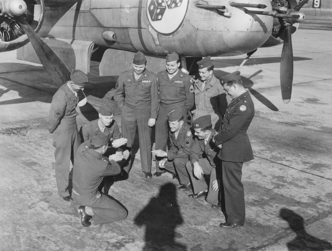 Here's a really poor photograph of another B-25G, this time undergoing maintenance, for your consideration. Think about what you're looking at for a minute, and let's put it in the proper context. Let's pretend like you're doing major repair work on your car, and let's pretend you live in the Florida Everglades and your driveway is on the edge of a swamp. Let's add heat, humidity, bugs, snakes, and the occasional air raid to your repair efforts. That was every day for those guys; every stinkin' day, and they got it done every day. Every stinkin' day! Rocker Collection